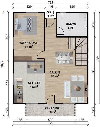 139 m² alana sahip iki katlı prefabrik evimiz, modern ve işlevsel tasarımıyla geniş aileler için ideal bir yaşam alanı sunar. 122 m² iç yaşam alanı ve 17 m² veranda, iç ve dış mekan konforunu bir arada sağlar. Zemin katta geniş bir salon ve mutfak, bir yatak odası, banyo, WC ve giriş alanı yer alırken, 17 m²'lik veranda keyifli vakitler geçirmek için mükemmel bir alan sunar. Birinci katta geniş yatak odaları, bir çocuk odası veya çalışma alanı, banyo ve merkezi bir hol bulunmaktadır. Akıllı tasarımı sayesinde evin her bölümü hem kullanışlı hem de estetik bir şekilde düzenlenmiştir. Tüm detaylar, modern yaşamın ihtiyaçlarına uygun olarak tasarlanmıştır. Dayanıklı ve kaliteli malzemelerden üretilen bu prefabrik ev, uzun ömürlü ve çevre dostu bir yapı sunar. Hızlı ve kolay montaj avantajı sayesinde yazlık, aile evi ya da kalıcı konut olarak kullanım için idealdir. 122 m² işlevsel iç alanı ve 17 m² verandasıyla, hem geniş hem de konforlu bir yaşam arayanlar için benzersiz bir seçenektir. Doğayla iç içe bir hayat için bu evi tercih edebilirsiniz! Yüksek kaliteli malzemelerden üretilen bu prefabrik ev, dayanıklılık ve uzun ömürlü kullanım için özel olarak tasarlanmıştır. Hem yazlık hem de kalıcı konut arayışında olanlar için ekonomik, hızlı ve çevre dostu bir alternatif sunar. Bahçenizde, arazinizde ya da tatil beldenizde huzur dolu bir yaşam kurmak istiyorsanız, bu modern prefabrik ev tam size göre!
