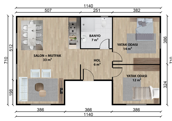 73 m² alana sahip tek katlı prefabrik evimiz, modern mimarisi ve işlevsel tasarımıyla geniş bir yaşam alanı sunar. 73 m²'lik tamamen kapalı yaşam alanında; ferah bir salon + mutfak bölümü, geniş bir yatak odası, ikinci bir oda veya çalışma alanı ve günlük ihtiyaçlarınıza uygun olarak tasarlanmış bir banyo bulunmaktadır. Bu ev, hem estetik hem de fonksiyonel yapısıyla konforlu bir yaşam için idealdir. Yüksek kaliteli malzemelerle üretilen evimiz, dayanıklılığı ve uzun ömürlü kullanımıyla dikkat çeker. Yazlık ya da kalıcı konut arayışında olanlar için ekonomik, hızlı ve çevre dostu bir çözüm sunar. Bahçenizde, arazinizde ya da tatil beldenizde konforlu bir yaşam kurmak istiyorsanız, bu modern prefabrik ev sizin için tasarlandı! 73 m²'lik geniş ve düzenli alanıyla hem ihtiyaçlarınıza hem de estetik beklentilerinize yanıt verir.